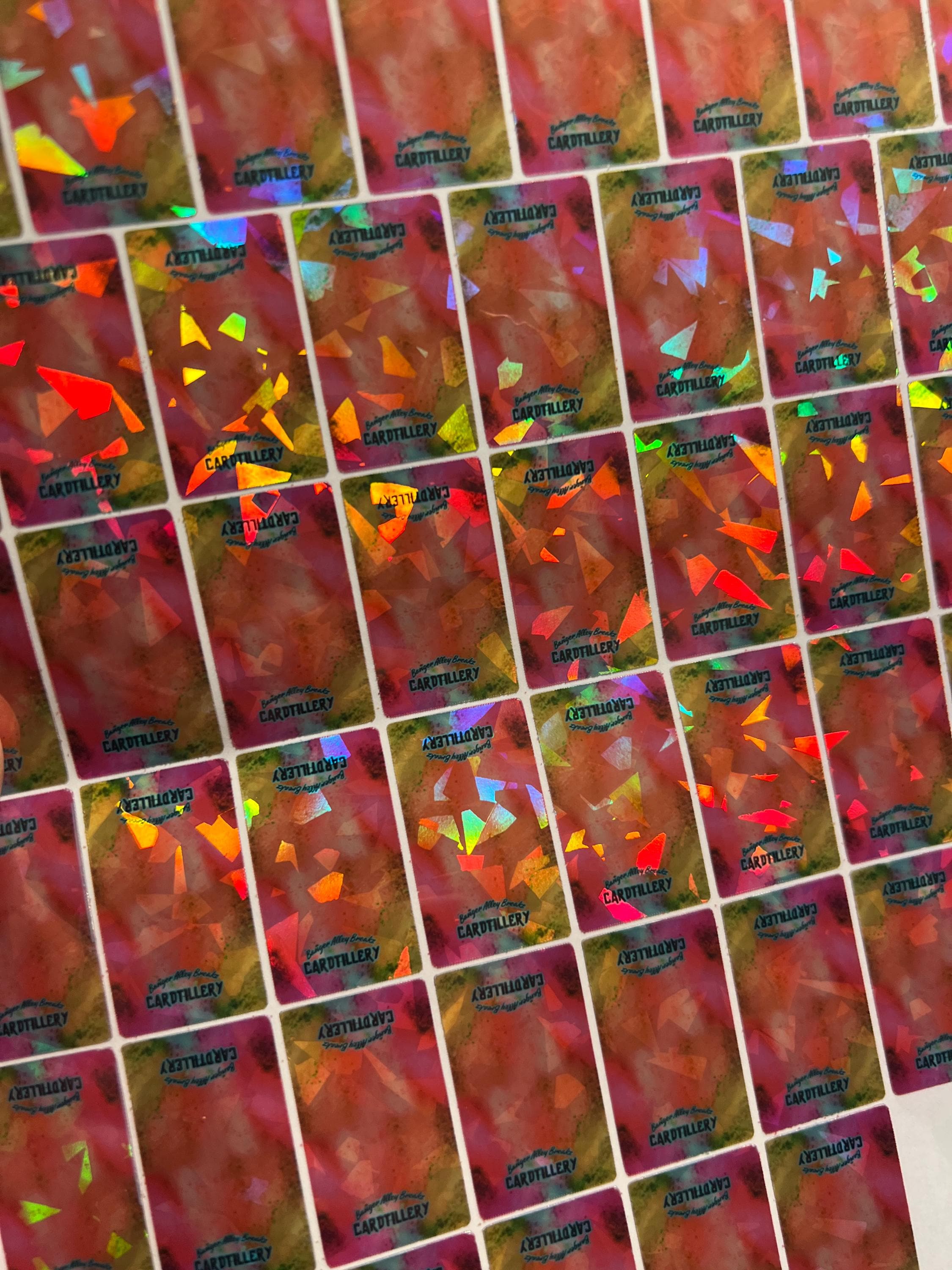 Enhance your sports trading card collection with these custom one-touch magnetic cracked ice stickers! Featuring a unique cracked ice design, these stickers offer both protection and a stunning visual effect for your cards. Each set includes 50 stickers that fit perfectly on one-touch magnetic card holders. Ideal for collectors, card breaks, or repacks, these cracked ice stickers will make your cards stand out and stay secure.